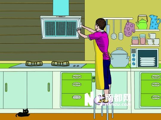 日常洗碗時,就用抹布擦擦抽油煙機外表面,這樣,大清洗抽油煙機時就沒有那么多麻煩。